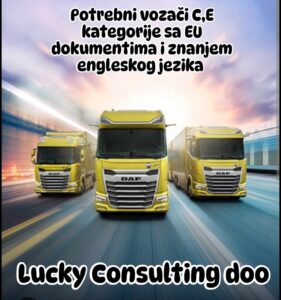 Lucky Consulting doo zbog otvaranja novih poslova traži više vozača za rad u Nizozemskoj.